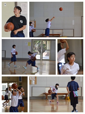 女子バスケ部は、日頃から練習マナーをとても大切にしています。いつも大きな声で挨拶をしていますし、マナーを意識して、毎日しっかりと練習を積み重ねています。今日も、顧問の横山先生のご指導に、集中して取り組んでいました。体育館内はとてもよい雰囲気でした。