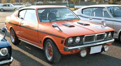 1970年10月 三菱よりコルトギャランGTOの名前で発売されました。メーターは当時の流行の6連メーターで、イメージリーダー的グレードの「MR」は他のランクのエンジンは全てOHCサターンエンジンでしたが、「MR」に限りDOHCエンジンが搭載されていました。当時の値段で134万ぐらいでした。今、この車、中古で180〜300万くらいと言われています。三菱がスポーツ車で勝負かけ始めた時代です。
