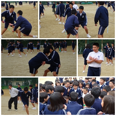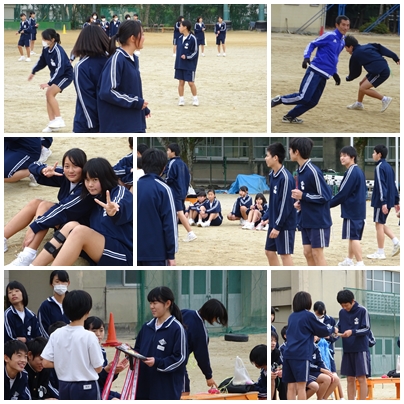 学年委員会行事集会部主催で、11月12月の誕生日の生徒を祝い、レクとしてしっぽ取りを行いました。