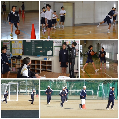 今日は連休最終日ということもあり、校内では三つ部の様子を紹介します。女子バスケット部ドリブルなどの基礎練習の終了後、横山先生にディフェンスにおける体の正しい入れ方を教えてもらい練習をしていました。野球部トレーニングと身体測定をしてもらっています。みんさん身長も体重も順調に伸びているようです。