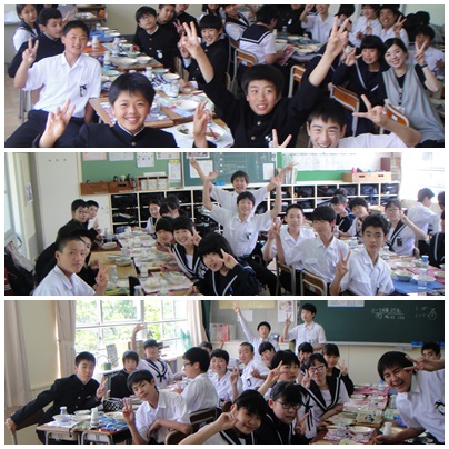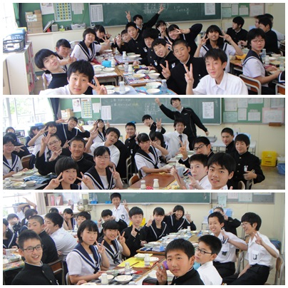 その後の給食は、開放感で笑顔いっぱいでした♪写真の枠にはまりきらないぐらい元気です。