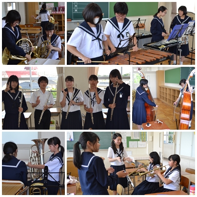 中間試験も終わり、久々の部活動です。吹奏楽部や女子バレー部は3年生が1年生に丁寧に技術指導をしている姿がみられます。とても微笑ましい光景が見られます。