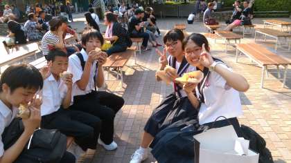 今度はスィーツの時間です。なんとか東京ドームシティのスィーツ店に到着したグループです。パン生地にフルーツをはさんださわやかな甘さです。