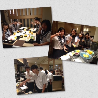朝食です!今までこのホテルを何回も使わさせていただきましたが、今日は初めての和室高級レストランです!運がいい今年の3年生です!