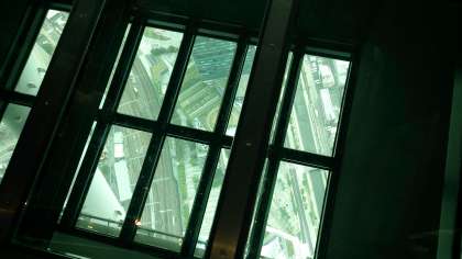 景色を眺める少年たち。真下を覗くと、こんな感じ。足がすくみます。
