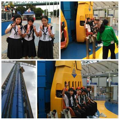 生徒たちに誘われ乗りました・・・・フリーフォール・・・怖かったです・・・。