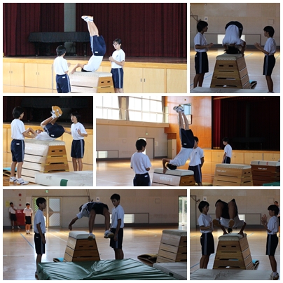 体育では、器械運動の発表が行われていました。