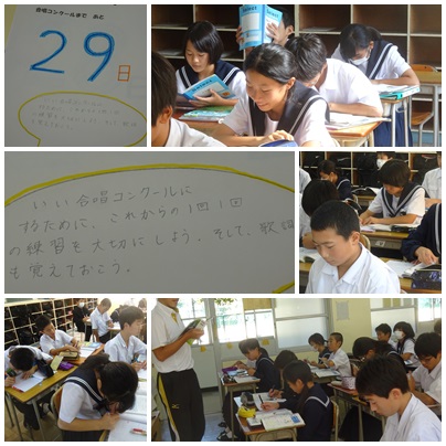 合唱コンクールに向けての掲示物がありました^^カウントダウンカレンダー形式で、みんなの意識を高めようと、熱いメッセージが載せられていました!毎日が楽しみになりますね♪