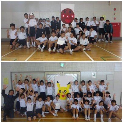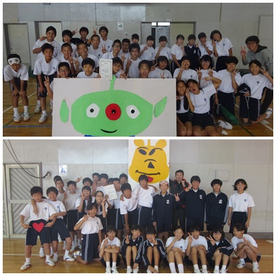 「福笑い」でできたキャラクターのオリジナルプレートとクラスの仲間♪