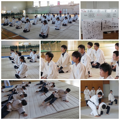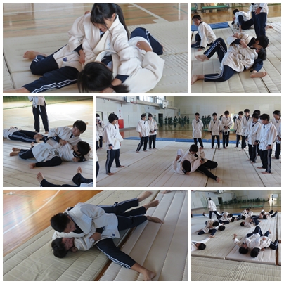 寝技では、袈裟固め(けさがため)の仕方を学習し、技をかけられた状態からの脱出ゲームをしました。このときは、真剣勝負で盛り上がりましたね。