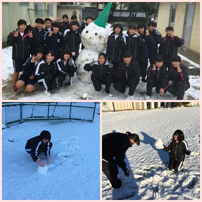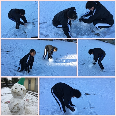 その一環として、雪だるま作りを行い、グランドやコートに降り積もった雪をどかしていました。