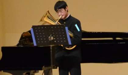 宮田中学校ラストを飾ったのは、悠斗君のソロでのユーフォニウムの演奏「スコットランドの釣鐘草」でした。大型の金管楽器だと大人でもしっかりと音がでないものですが、タンギングがしっかり効きしっかりと音が響いていました。