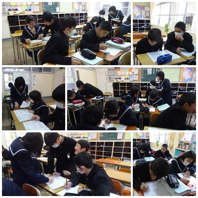 今日も漢字テスト、割り算を使った相対度数の計算、英語プリントなど熱心に取り組んでいます!教え合いも積極的に行われ、全員でゴールすることができました!見事でした!!