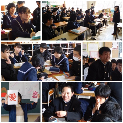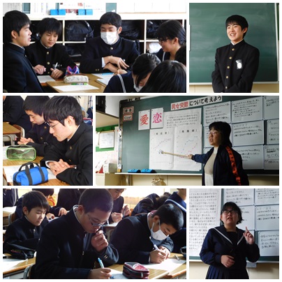養護教諭の永井先生の授業では、男女交際について考えました。どのクラスも、照れくさいようなくすぐったいような表情で先生のお話を聞いていました。グループでの話し合いでは、身近なテーマのためか、積極的に意見を出し合う姿が見られました。
