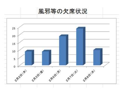 なんとか、ここで踏み留まって頂きたいものです。マスク、ヨーグルト、早寝早起き、うがい、手洗い、頑張りましょう!(校長)