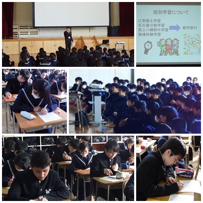 今日の5時間目は、来年度の修学旅行の時に行う班別学習の分野を選ぶ時間でした。