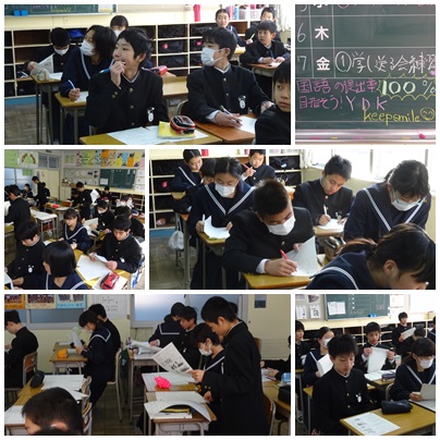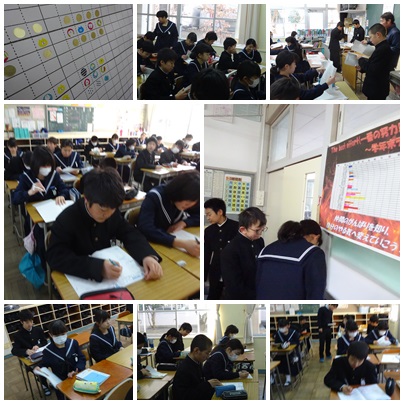 勉強時間をグラフにしたり、提出物を終えたらシールを貼っていくものも日に日に増えていっています^−^最後の定期テストに向けて火がついています♪