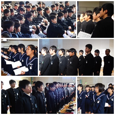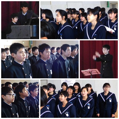 今週の水曜日、卒業生を送る会に向けて、1・2年生合同の合唱の練習をしました。先輩へのはなむけの気持ちを込めて歌いました。