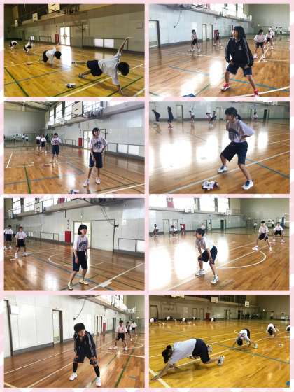 いつものように基礎練習、体幹を行った後、レイアップシュートの練習をたくさん行いました。昨日よりもステップが上手になった気がします!