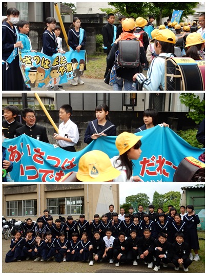 毎月10日はあいさつの日です。生徒会が中心となって、宮中だけでなく、母校の宮小・藤小にもあいさつ運動に行っています。ハロードという活動です。