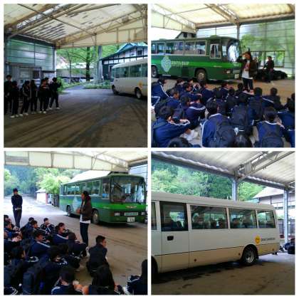 先ほどまで小雨が降っていましたがそれも止み、ターザン体験グループがバスで出発していきました。