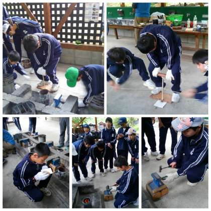 火おこし、クギからナイフ作り、魚とり、作ったナイフで捕った魚をさばく、魚を塩焼きにする・・・・と活動が目白押しでした☆