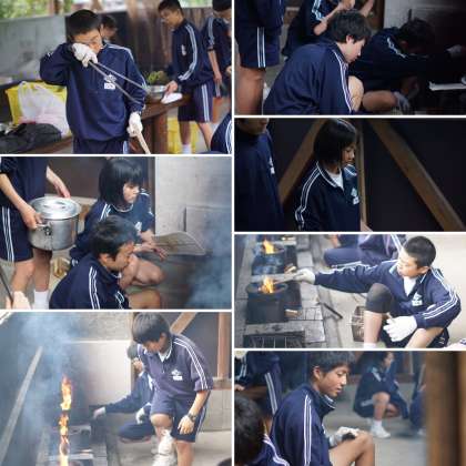 2日目の飯ごう炊飯、郡上鍋作りが始まりました!
