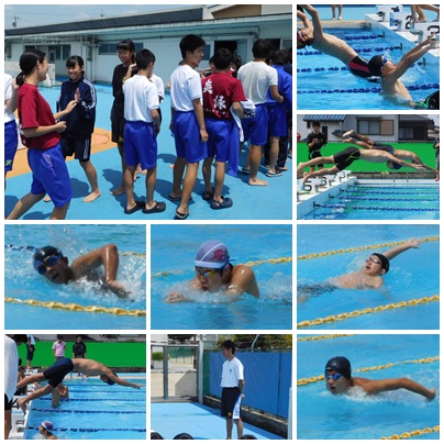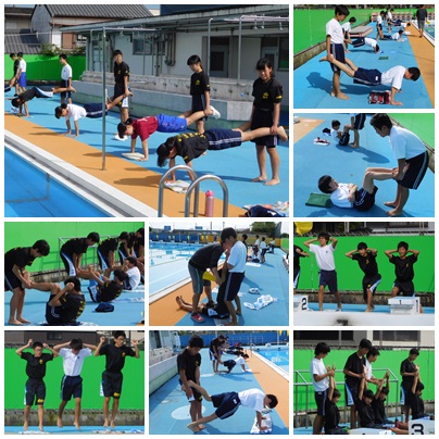 体が温まってから、プールで泳ぎました。1年生は、2・3年生と同じサイクルで、かなり辛そうでしたが、ついて行こうとがんばりましたね!その努力を続ければ、余裕を持ってついて行けるようになりますよ!