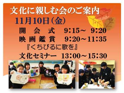 明日・明後日の2日間、「文化に親しむ会」を開催します。