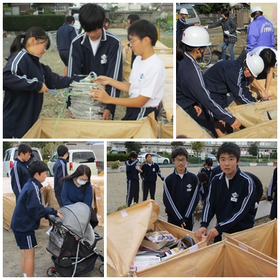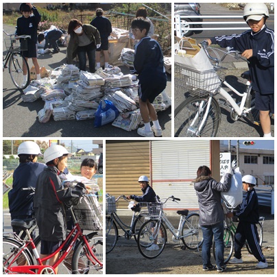 保護者の皆様や、生徒の皆さんの頑張りと地域の皆さんのご協力があり、多くの新聞紙や段ボールを集めることができました。「ありがとうございました。」