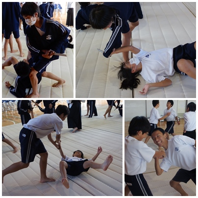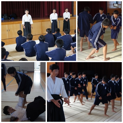 しかし、危険な場面に遭遇してしまうときもある。そんなときのために合気道の技を教えていただきました。足運びから手を捕まれた時の逃げ方など細かく教えていただきました。女子生徒も技をしっかり覚え、男子生徒をあしらっていました。
