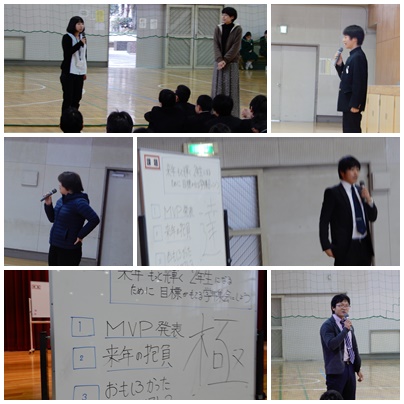 劇みたいな物もあり、先生方の抱負の一次の発表もあり、とても充実した集会となりました^−^