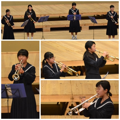 3チーム目の、トランペット四重奏「ソナチネ」は、1年生がリズムをとりながら、2年生が聴かせどころで鮮やかな響きを会場一杯に満たし、聴き応えがありました。