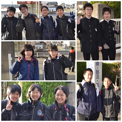 今日は3年生と休養日の女子バレー部の皆さんが朝の笑顔に協力してました。