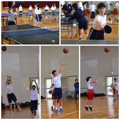 バスケットボール部、3ポイントシュートや遠くからゴールを狙う練習を頑張っています。