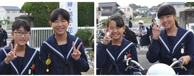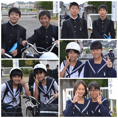 今朝は、部活動に向かう1年生、2年生に朝の笑顔に協力をしてもらいました。