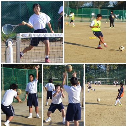 サッカー部、キャプテン中心にポストシュートの練習をしています。1球1球に受けやすさを込め丁寧にボールを配球してあげています。