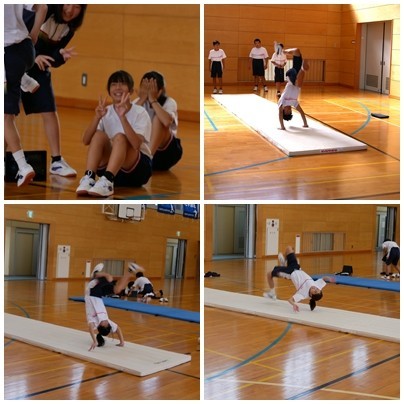 1年生 体育の授業の様子です。マット運動に取り組んでいます。