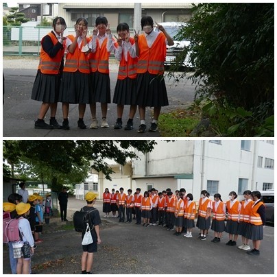 ボランティアの生徒が、古知野北小、草井小へ行き、小学生と気持ちのよいあいさつを交わしました。