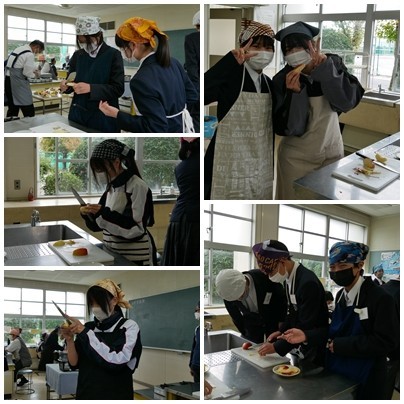 3年生 家庭科の授業の様子です。リンゴの皮むきをしています。
