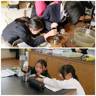 2年生 理科「結露する温度を調べよう」の授業の様子です。