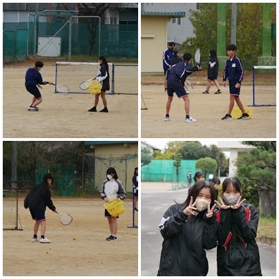 体育の授業の様子です。バスケとテニスに取り組んでいます。