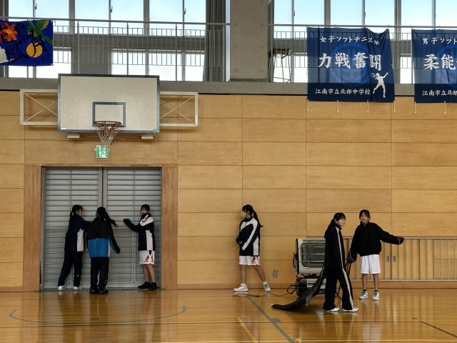 そして、大会後は会場の片付けがありました。他中学校さんの助けもあり、ものの10分ほどで片付けが終わりました。少ない指示で、話し合いも無しに自然と分担し、行動してくれました。ありがとう。朝送り出してくれる保護者の皆様、普段大会を準備・運営してくださる方々、対戦してくださる相手校、審判の先生。今回、準備片付けを進んで動いてくれたみんななら、部活が、大会ができることが当たり前では無いことをよく理解してくれていますね。感謝を忘れず、練習を重ねよう。