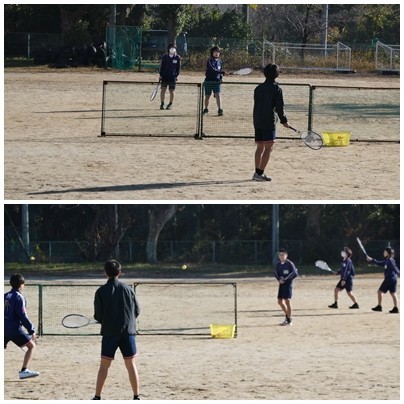 2年生 体育の授業の様子です。バスケとテニスに取り組んでいます。