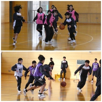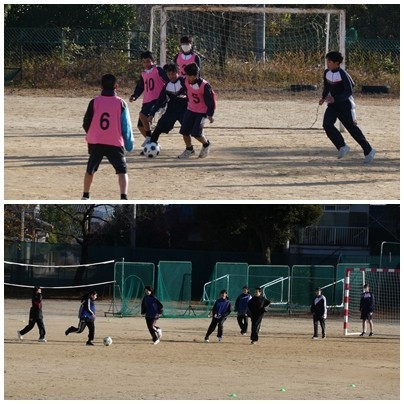 1年生 体育の授業の様子です。バスケとサッカーに取り組んでいます。