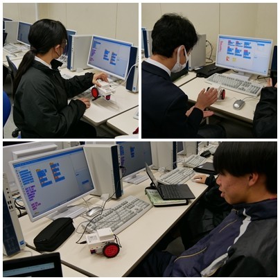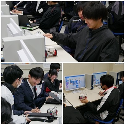 3年生 技術の授業の様子です。車の模型を動かすプログラムを組んでいます。