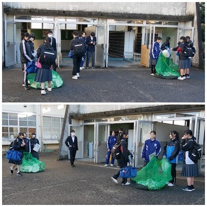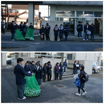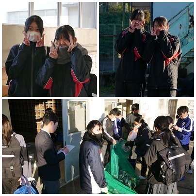環境委員会の子たちが、寒い朝、頑張って「アルミ缶と牛乳パック」回収をしてくれました。