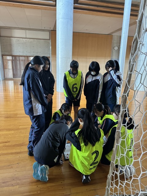 練習試合中盤に相手校に頼んで生徒達と話をする時間をいただきました。スローインからボールを奪われる点を改善することと生徒たちの雰囲気を確認することを目的として話をしました。保護者の方からアドバイスもいただき、生徒たちにはそれを踏まえてスローインの話をさせてもらいました。そして同時に自分は、生徒達が勝ちに近づくためには出来ることはしたいと思っていること、知識のない顧問だからこそ、男子バスケ部の顧問や保護者の方、YouTube等、頼れるものを頼らせていただいていること。そしてそれは生徒達が「勝ち」を目標としているからであり、自分のできる限りをやりたいと思って向き合っていることを生徒達に伝えました。その上で生徒達の現状は全員本当に勝ちに拘れているのか?を投げかけました。生徒達から話し合いの時間が欲しい旨を聞きました。自分が審判を行っている間に生徒同士で作戦の話し合いが行われていました。そこに熱を感じました。