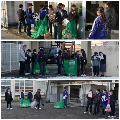環境委員会の子たちが、雪の残る寒い朝、頑張って「アルミ缶と牛乳パック」回収をしてくれました。