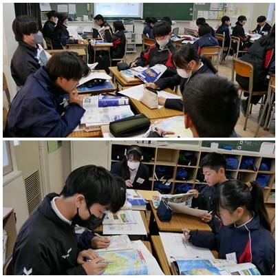 1年生 社会「オセアニア州の地形について探求しよう!」の授業の様子です。